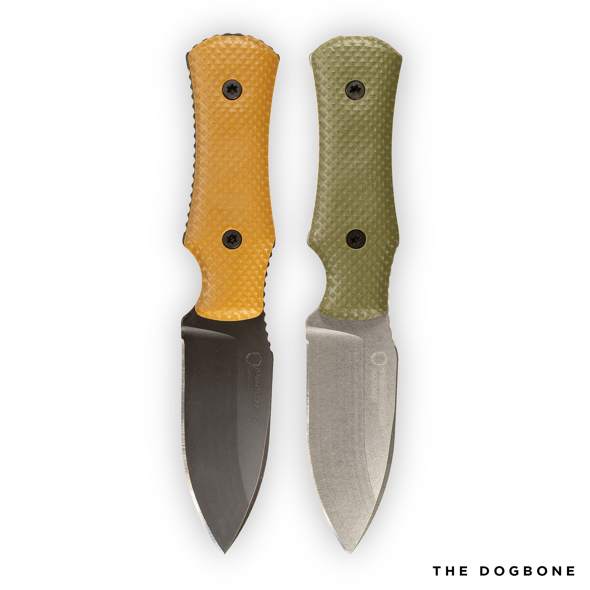 Each Dogbone knife comes with a precision-crafted, in-house manufactured sheath. It is available in both standard low-profile and deep-carry configurations, offering a variety of belt attachment methods. The standard low-profile sheath features adjustable retention, allowing you to fine-tune the fit to your preference. The sheath is constructed from .060" Kydex, vacuum-formed, CNC-trimmed, and assembled in-house. The top rivet holes use a common .75"/1.5" spacing to accommodate various attachment methods. All hardware is made of black oxide stainless steel. A leather sheath made by Chattanooga Leather Works is also available for purchase separately.